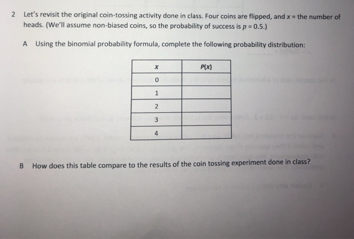 Solved Probability Distribution For Number Of Heads Chegg Com